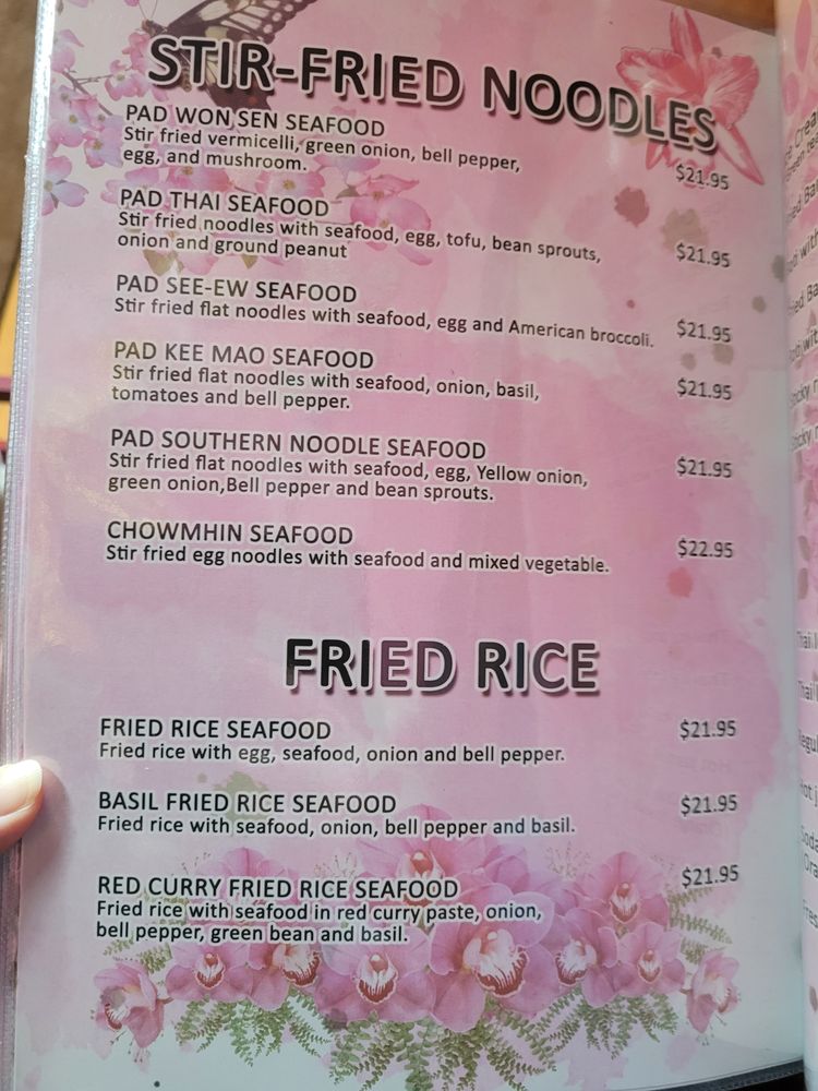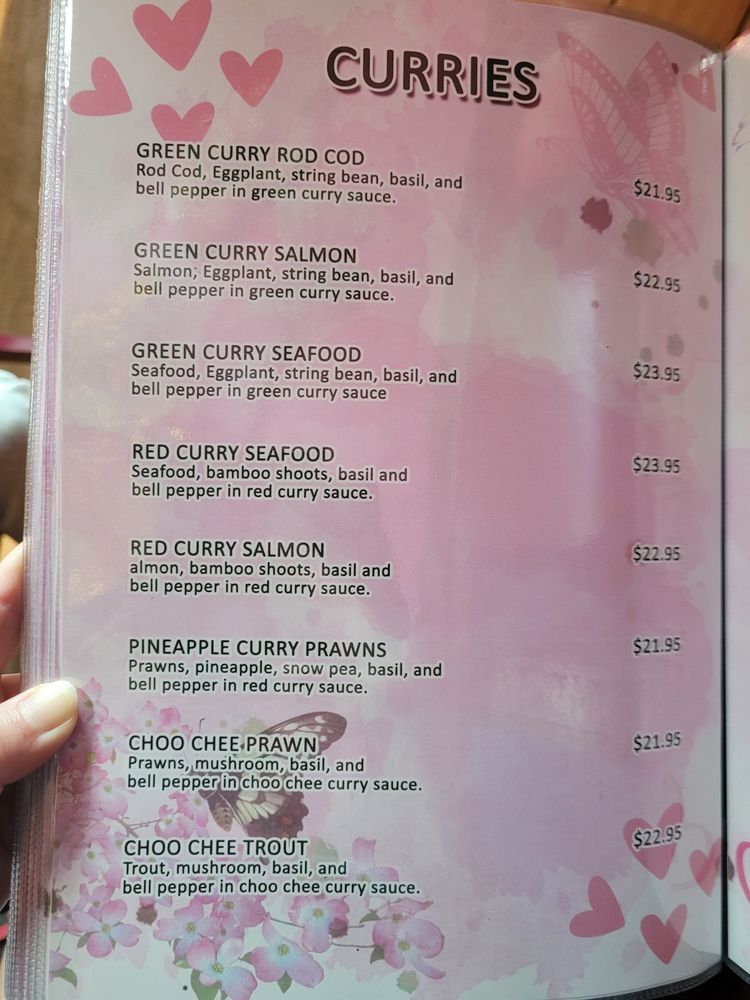 Deep-fried rod cod in curry paste topped with bell pepper, eggplant, krachai, Young Thai pepper and crispy basil.