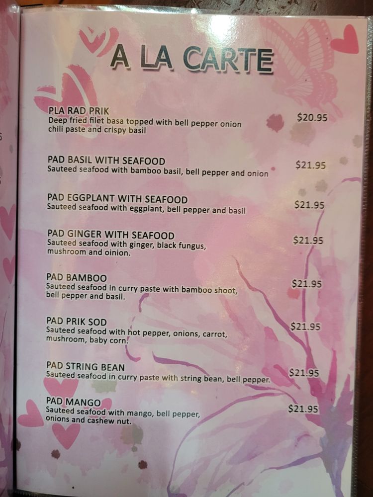 Deep-fried filet basa topped with bell pepper, onion, chili paste and crispy basil.